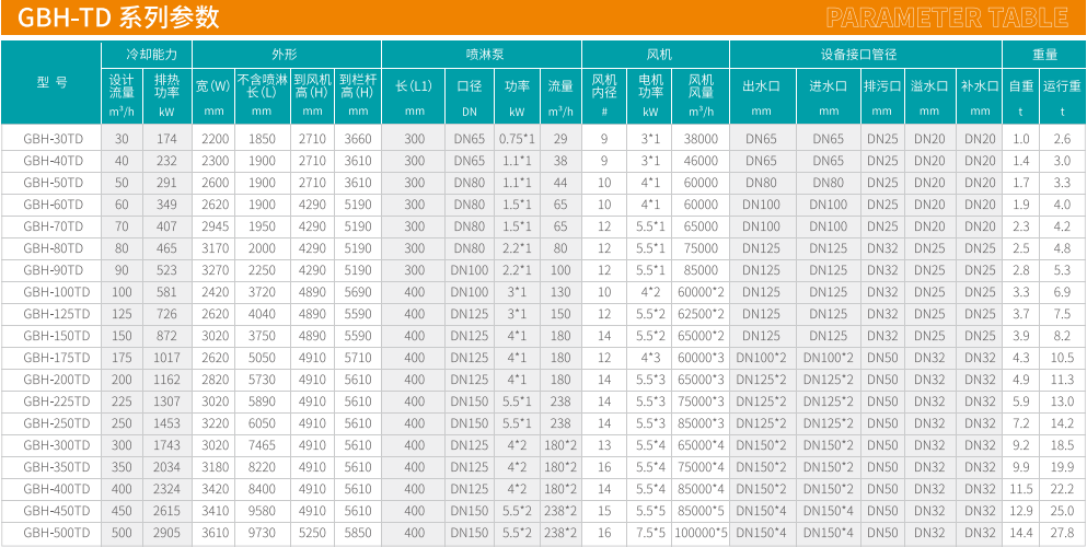 FBH产品运用了风水同向横流式二次热交换的管束与PVC填料组合 的技术, 实现了高效换热。 由于空气和喷淋水同向流经管束, 喷淋水能较大程度地覆盖在管束表面, 保证管束表面完全湿润。 相比风水逆向 的结构, 大大减少了管束壁干点和水垢的形成。